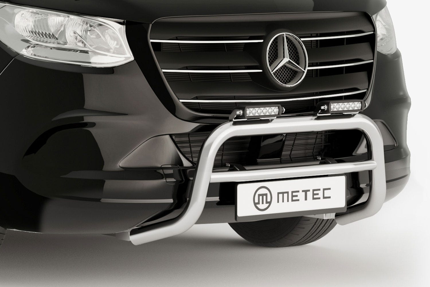 Robust Metec kufanger i krom for Mercedes Sprinter (2018+). Beskytter mot skader og gir et tøft utseende. Laget av syrefast, høyglanspolert stål. Enkel montering. EU-godkjent.